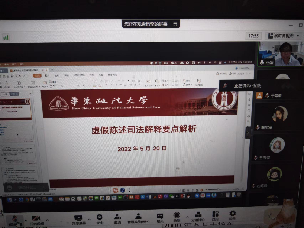 日前,华东政法大学伍坚教授通过腾讯会议形式为我院师生做了题为《证券虚假陈述司法解释若干要点解析》的学术讲座。