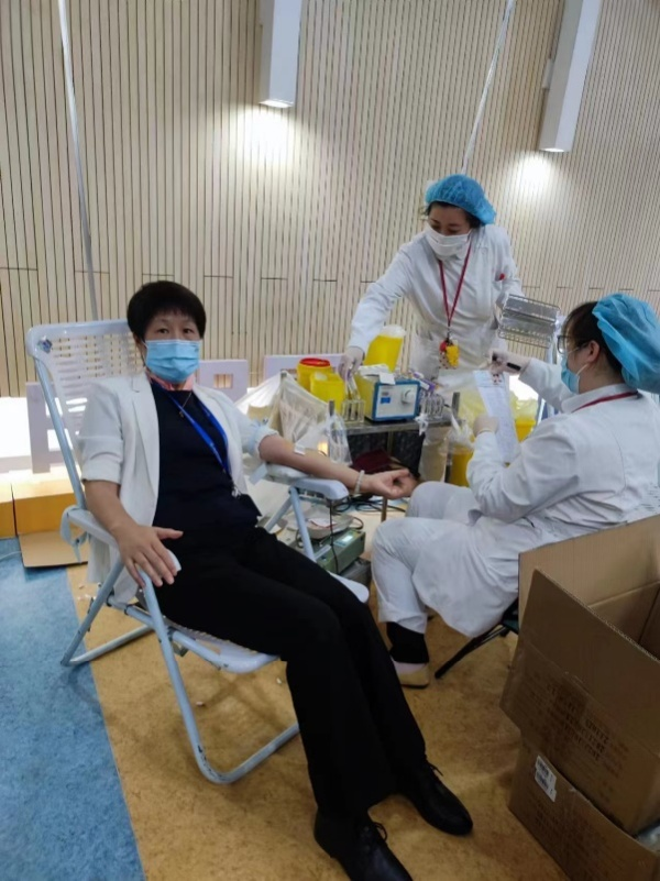 陈秋兰老师陪伴、鼓励献血同学