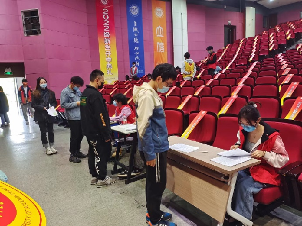 献血的同学们正认真的配合志愿者工作,有序地进行着签到,体检,抽血,留观,签离的活动程序。