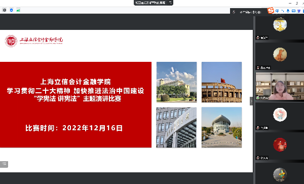 为更好地学习贯彻党的二十大精神,营造浓郁的校园法治文化氛围,12月16日晚,我校举办“学习党的二十大精神,推动法治中国建设”为主题的“学宪法 讲宪法”演讲在线比赛。此次活动由校党委学工部、学生处主办,法学院承办。