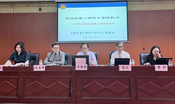 论坛第一单元主题为“论司法权的权力属性及其实务分析”,上海市第三中级人民法院党组书记、院长、一级高级法官席建林就本主题作主旨发言。