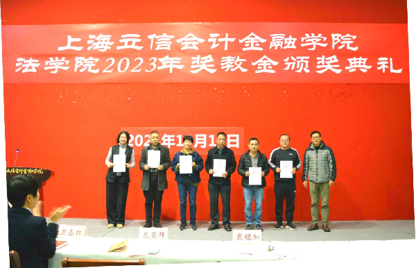 为深化主题教育成果,深入落实立德树人根本任务,浓郁争做“四有”好老师的育人氛围,11月15日上午,法学院在学活301举行2023年奖教金颁奖活动。颁奖活动由学院党总支副书记副院长陈秋兰主持,学院部分教职工参加。