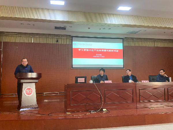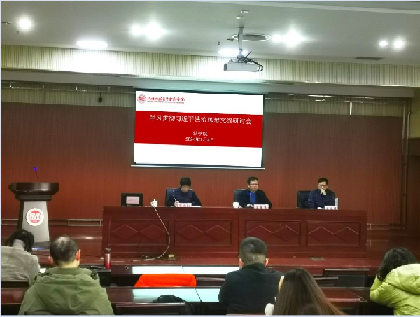 为深入学习贯彻党的二十大精神和习近平法治思想,1月4日下午,法学院在上川路校区实验中心201召开“学习贯彻习近平法治思想交流研讨会”,校党委副书记、副院长王军华出席,会议由法学院党总支书记卫志红主持,法学院全体教职工参加。