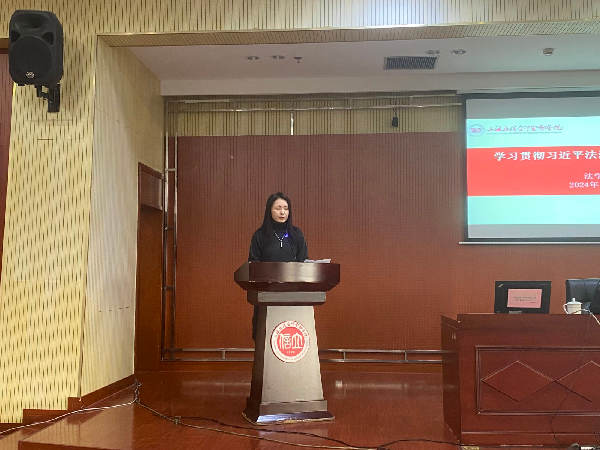 其次,三位法学专业教师代表依次进行交流发言。法学院王旭老师结合党的二十大报告相关内容,从新时代依法治国依法执政、宪法政策性法规对于规范市场行为的及时性和有效性、不断完善法律机制的角度进行了交流分享;法学院副院长于春敏老师结合自己对习近平法治思想的学习领会及科研工作实际,立足法学教师的学科专业优势,就如何深化习近平法治思想的学习与新时代法学理论研究的有机融合进行了交流分享;经济法专业主任陈阵香老师围绕《习近平法治思想概论》课程教学目标、教学思路、教学设计等方面,就立足课堂育人主渠道,如何积极践行立德树人、培养德法兼修的新时代高素质法学人才进行了交流分享。