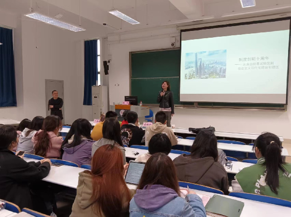 最后,由于春敏副院长总结,于副院长表示,林圻副处长授课内容旁征博引,足以其渊博的知识和扎实的功底,她代表学院十分感谢林副处长的这次讲座,也希望法学院的同学能够继续钻研,争取为上海的法治事业做出贡献。