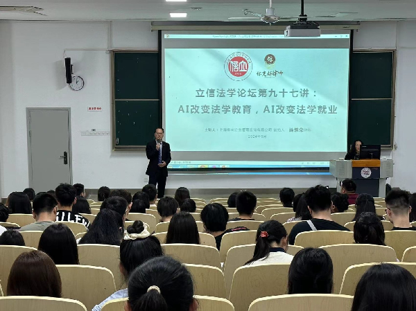 为了更好的加强职业规划教育,促进学生的全面发展。2024年6月26日,学院邀请了上海烁光企业管理咨询有限公司创始人汤继荣律师为2023级近200名同学带来一场主题为《AI改变法学教育,AI改变法学就业》的精彩讲座。