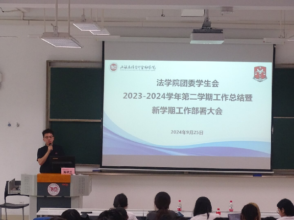 新学期伊始,法学院团委学生会为进一步总结工作经验部署新学期工作,于2024年9月25日在六教322教室开展了2024年第一次团学全体大会。学院党总支副书记副院长陈秋兰、团委书记魏慧军,以及150余名团委学生会干部、干事出席了本次大会。学生会主席熊博宇主持本次会议。