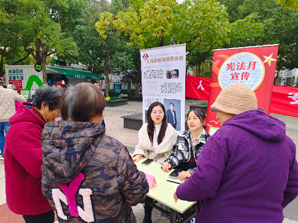 2024年12月6日,正值宪法宣传周期间,法学院联合曹路镇司法所、上海新惟律师事务所、上海融孚律师事务所在曹路镇银丰苑综治广场成功举办“法治文化节之宪法进社区”活动。此次活动旨在通过寓教于乐的方式,深度增强社区居民对宪法的认识与理解,进一步营造出一个积极向上、充满法治精神的社区环境,让宪法精神深入人心,成为指引居民日常生活的明灯。