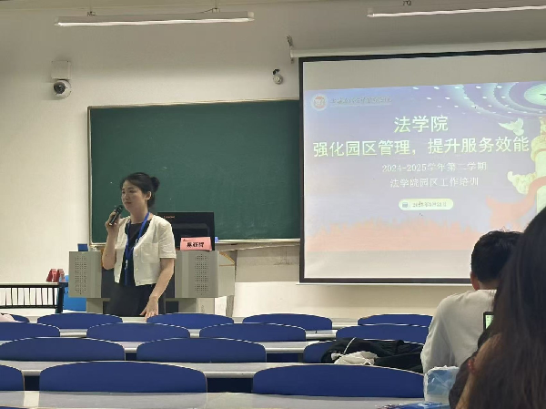 为进一步加强法学院园区建设,提升园区学生骨干人员业务能力与服务水平,近日法学院与学工部园区工作办联合开展“强化园区管理,提升服务效能”的专题培训。本次培训活动专门邀请了学工部园区办易亚哲老师主讲, 法学院24级生活委员、心理委员、权益委员、寝室长、楼层长参与。