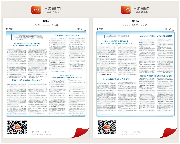 在第12个“国家宪法日”到来之际,法学院组织教师结合党的二十届四中全会精神学习与“十五五”规划建议阐释,对习近平法治思想进行了专题学习,围绕中国法学自主知识体系建设、培养财经类法治人才及依宪治国、依宪执政等主题展开深入交流,形成了一系列理论文章,《解放日报》于2025年11月17日、12月3日分别对法学院7位教师的研究成果进行了专版刊登。