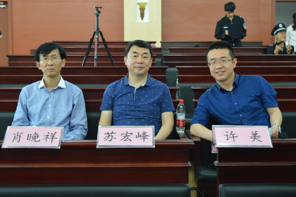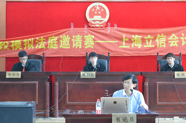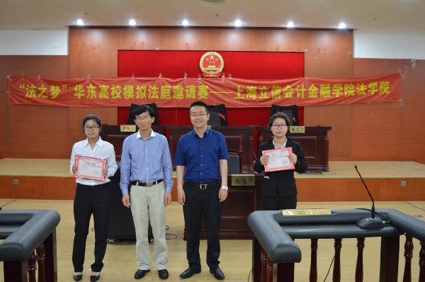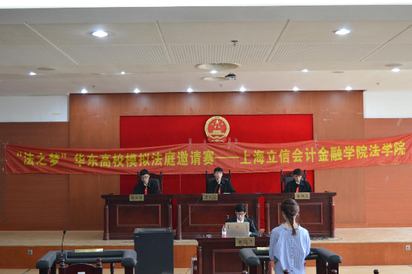 6月10日下午一点,法学院首届“法之梦”华东高校模拟法庭邀请赛在我校浦东校区模拟法庭正式开赛。到场的评委嘉宾有:上海市高级人民法院刑庭肖晚祥法官,原上海市人民检察院许美检察官(现为律师),上海立信会计金融学院法学院副院长,刑法教授苏宏峰老师。