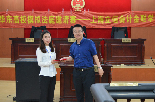 两场比赛结束后,由主办方上海立信会计金融学院法学院赛事负责人根据评委嘉宾的综合评分,公布获奖队伍并由三位评委嘉宾进行颁奖,获奖队伍分别是: