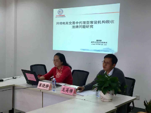 2018年11月26日下午3:00,我院特聘教授--武汉大学法学院崔晓静教授来我院就“跨境电商交易中代理型常设机构税收法律问题研究”给我院大三学生做了一场讲座,本次讲座由龙英锋院长全程主持陪同。