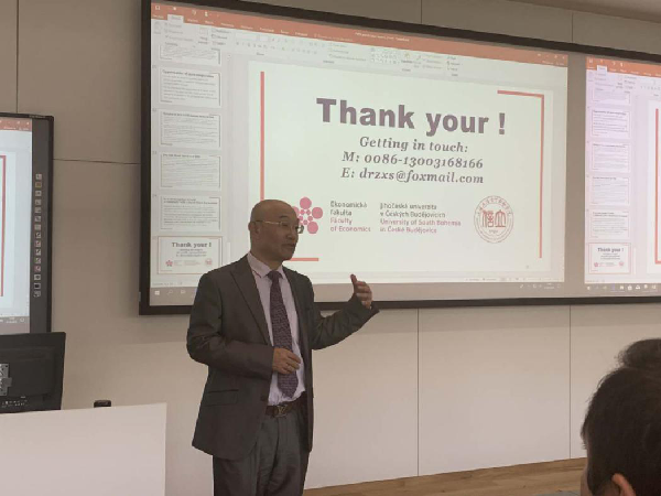 讲座由该校管理与经济学院副院长Ing. Lubor Homolka博士主持。在该校期间,张学森与该院院长Ing. Drahomira Pavelkova教授、副院长Bedrich Zemola等进行了友好交流,介绍了我校的基本情况、发展规划和特色优势。