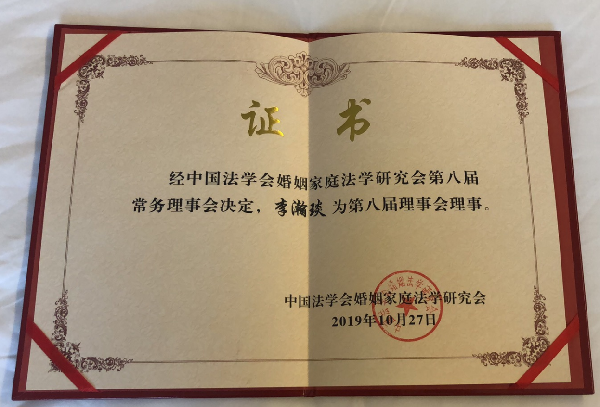 我院李瀚琰老师受邀参加年会,在第一分组“身份权、特定群体的婚姻家庭权利保护”主题讨论发表《论家庭暴力案件中现实危险的释明》一文中的受暴妇女综合症相关观点并与前沿学者展开交流。本次会议遵循合法程序,举行了中国婚姻家庭法学研究会第八届常务理事会会议,李瀚琰老师成功当选第八届理事会理事。